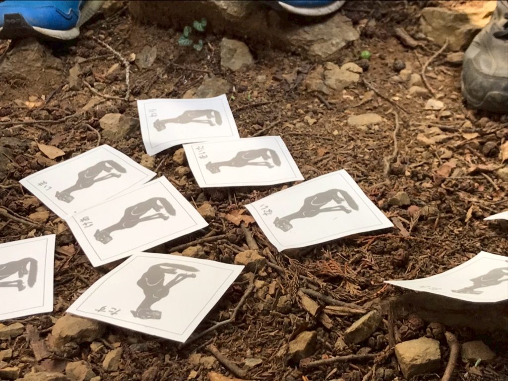 今日はスパイ本部からの指令書を元に山に登りおいぬ様の祠を目指します。朝ごはんもしっかり食べて、やる気に満ちた一歩を踏み出しましょう。まずは、昨日訪れたロックガーデンを越えたところまで向かい、その後は鍋割山山頂、尾根伝いに進んで御岳神社の奥の院を目指します。