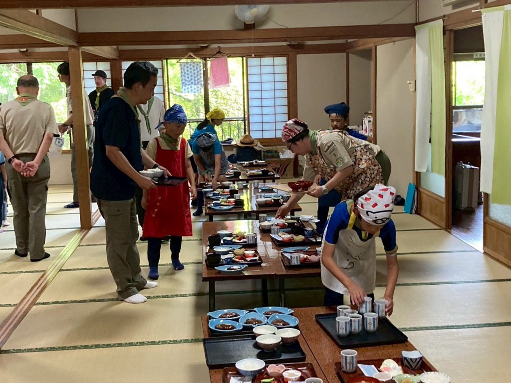 朝食準備。スカウト同士の連携もよくなってきて手際よく進みます。