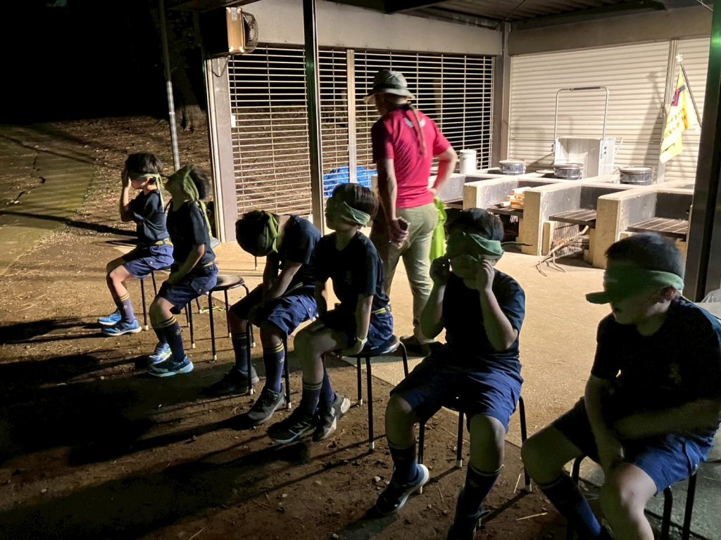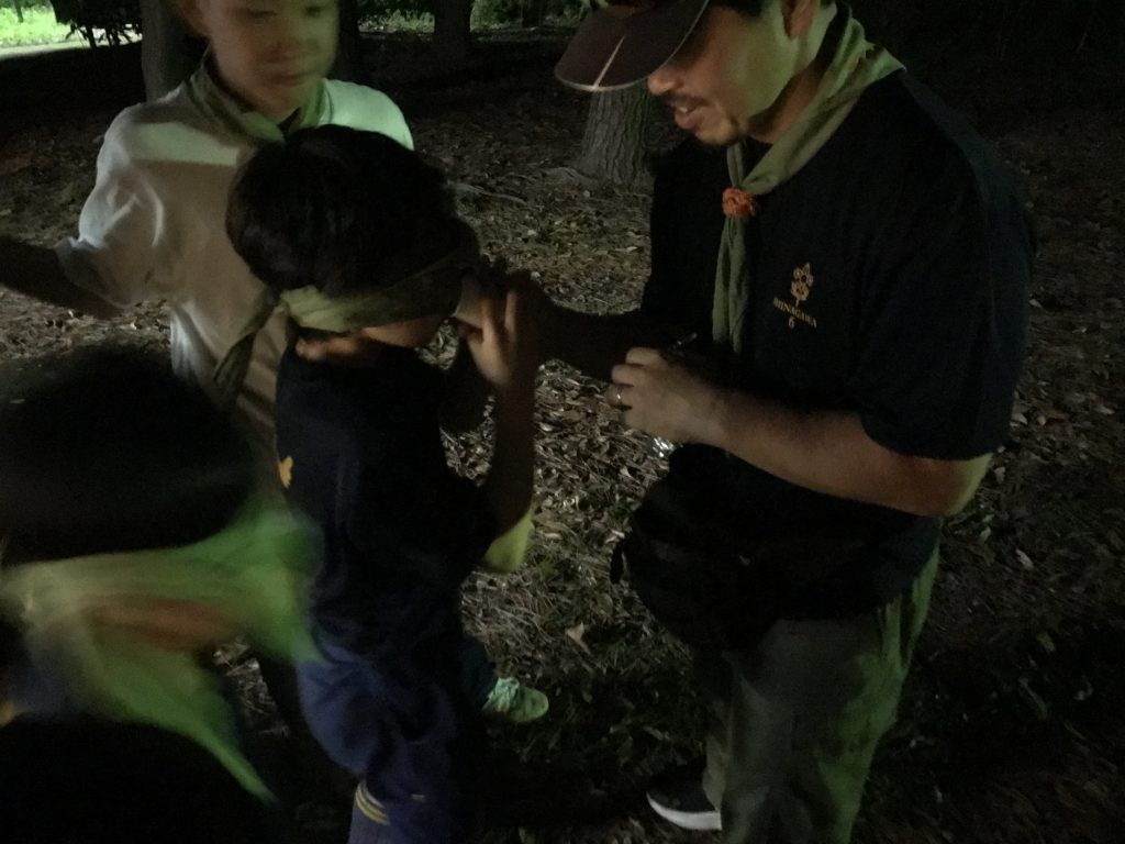 ベンチャースカウトにエスコートをしてもらい五感を使ってチャレンジします。