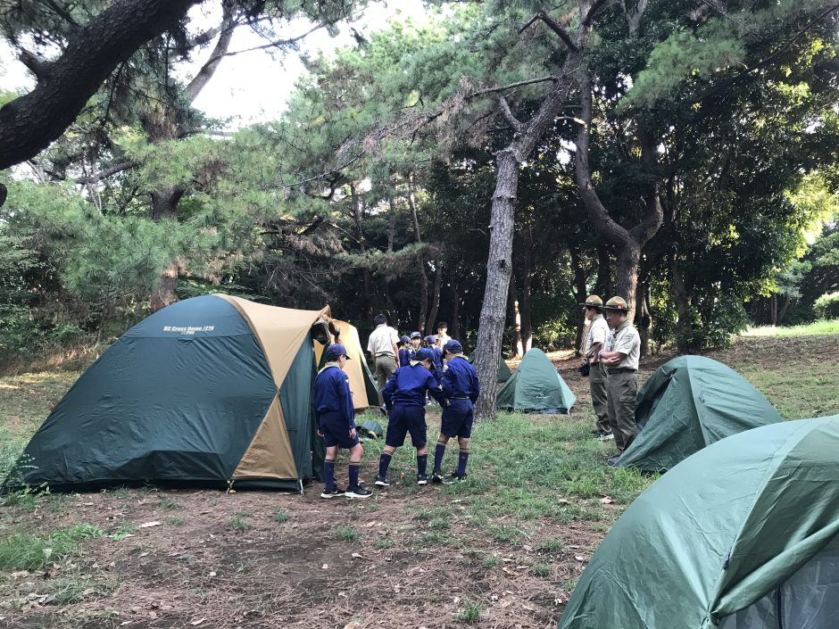 きょうもロープワークやソングを練習し、その後テント撤営。
