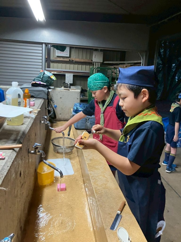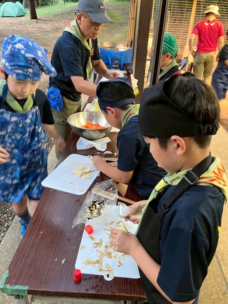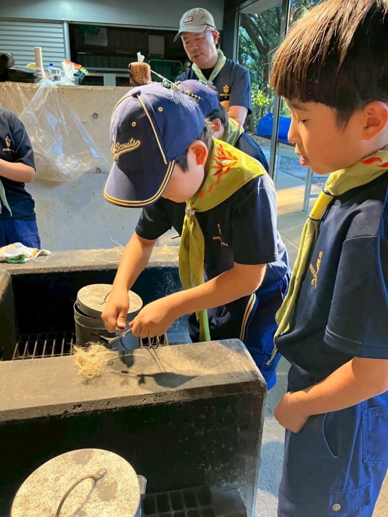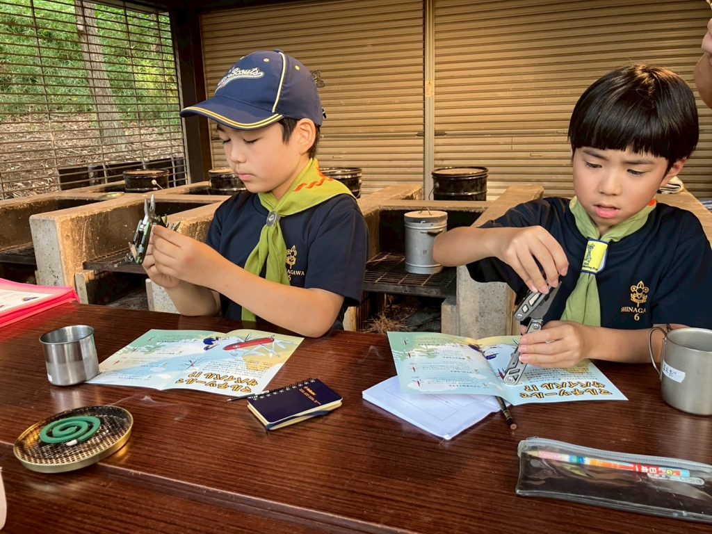 設営後は、このキャンプ用に用意したチャレンジ章「フィールドマスター」に取り組みます。