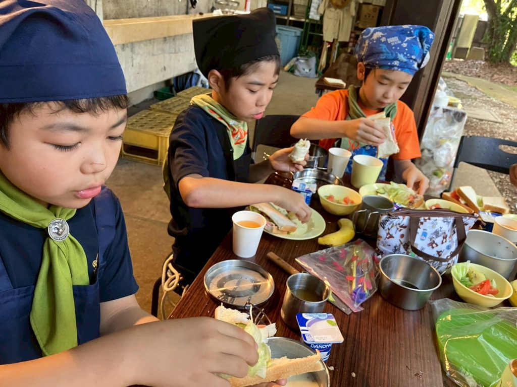 昨晩同様、自分たちで協力し合ってサンドイッチを作ります。