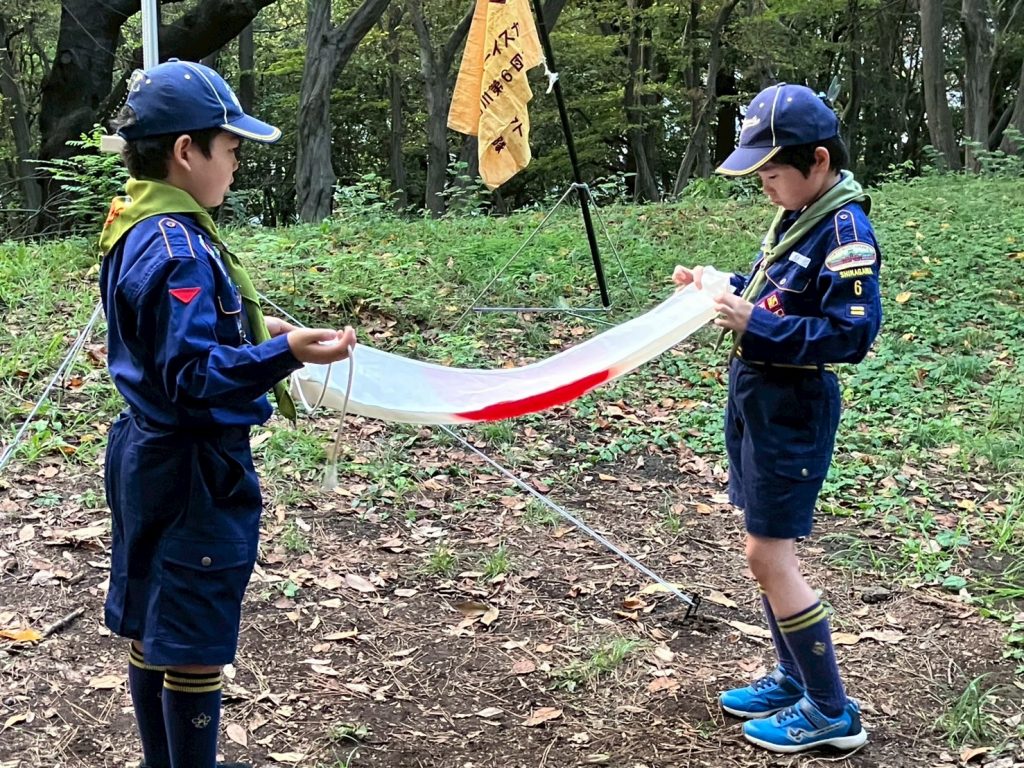 テントが初めてのスカウトもいるので、設営しながらドキドキわくわく。