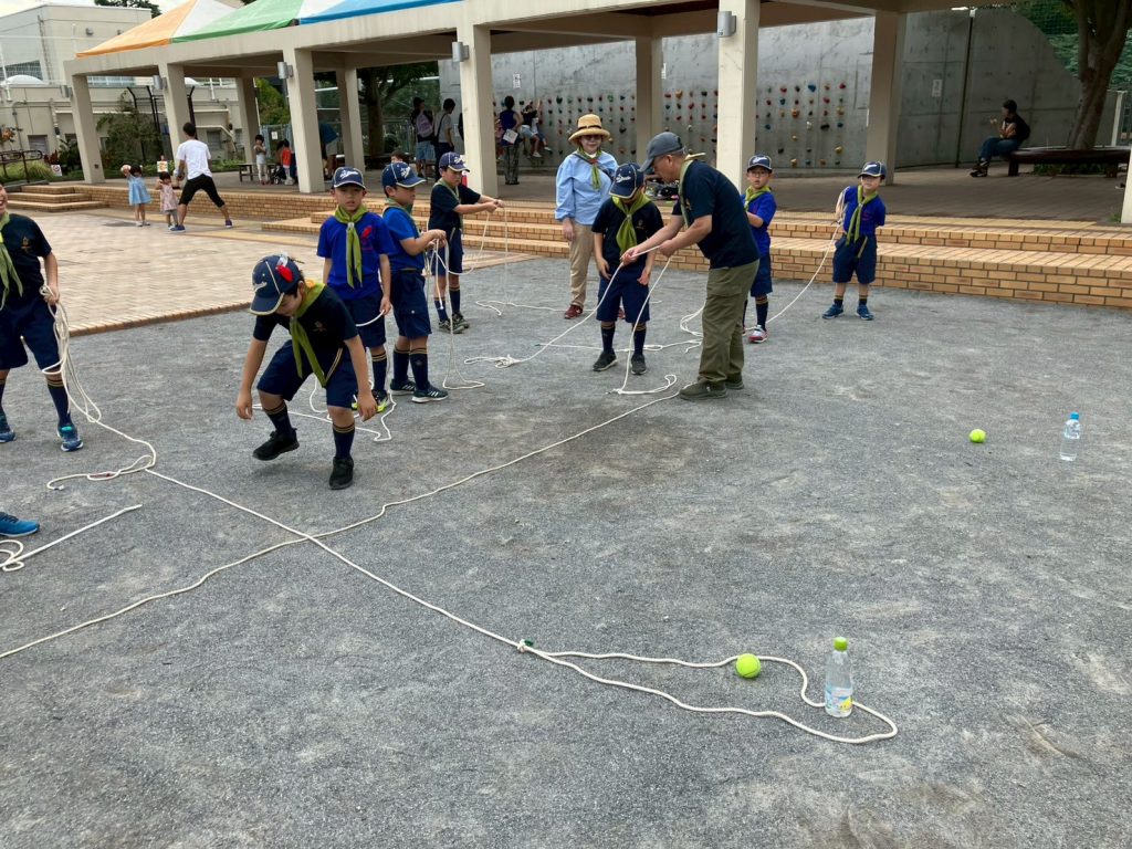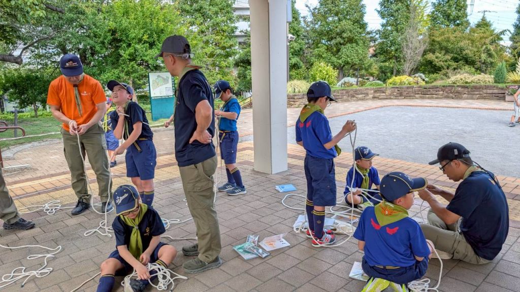 ロープワークも練習しました。8の字結び・本結び・ひきとけ結び・もやい結び。
