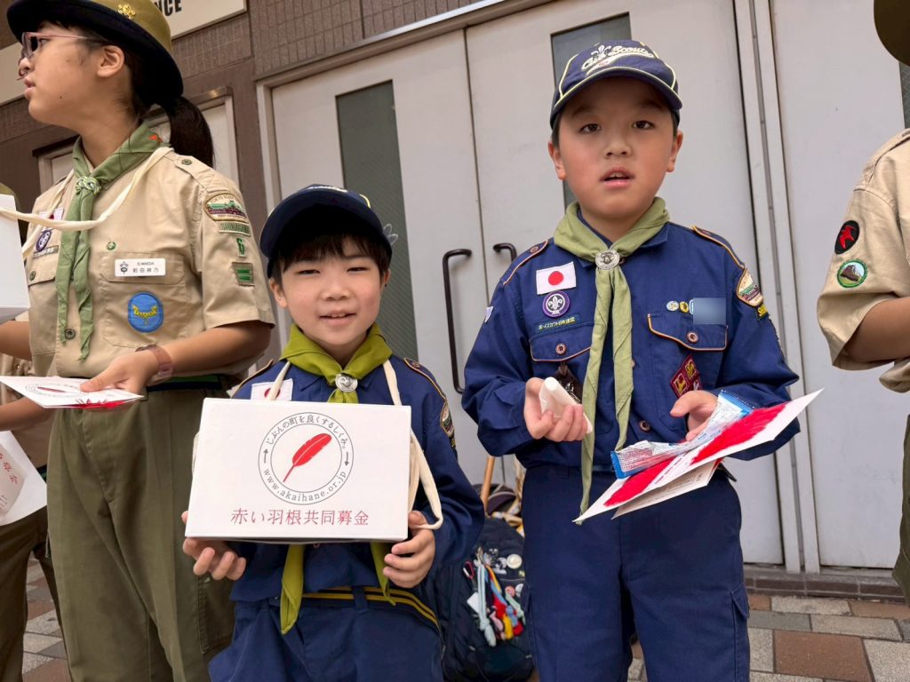 大きな声で募金をお願いしたスカウトたち。とってもたくましかったです。